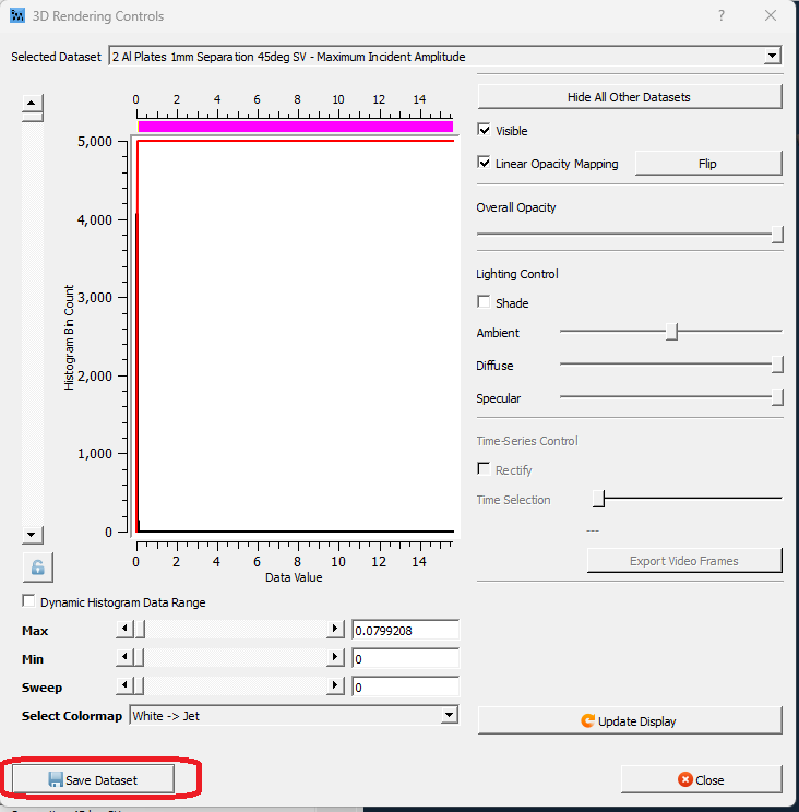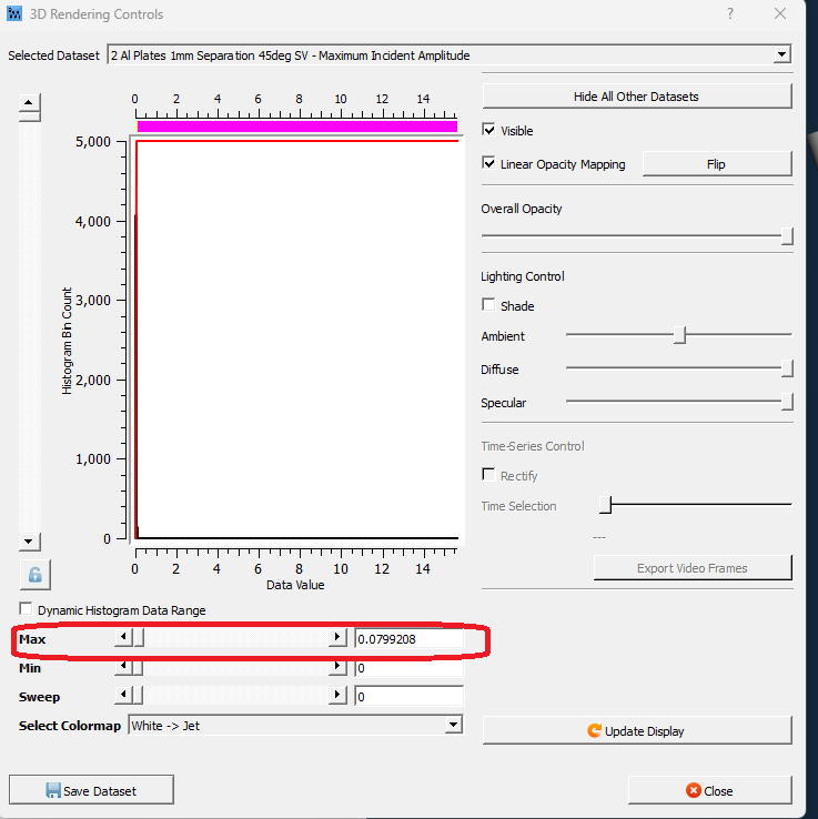 For example, this first image shows a simulation result with the colormap defaulting to the dataset minimum & maximum values.