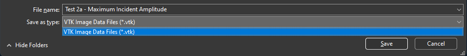 You will notice that NDSim helps to identify the correct file type you will be saving. In this case, we are saving a .vtk file format.